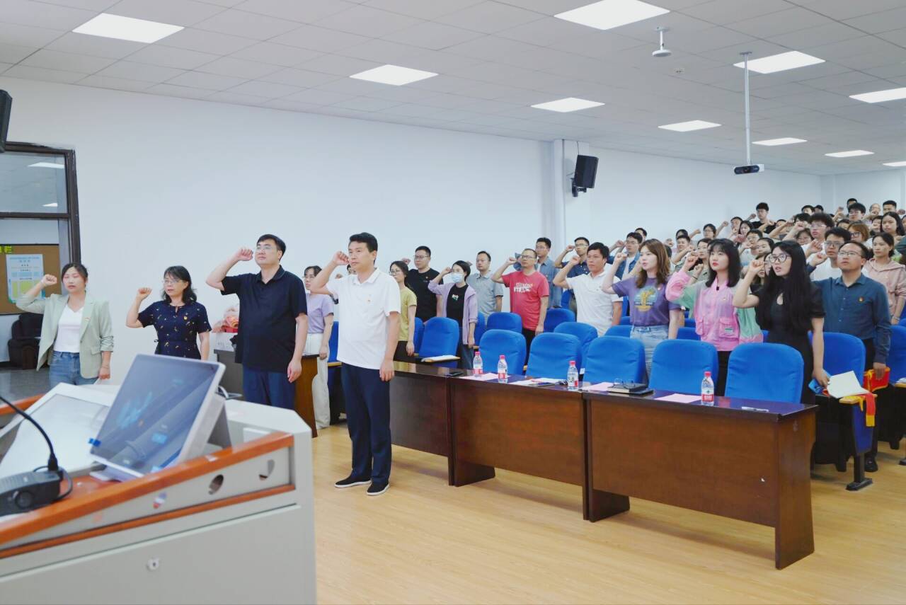 为庆祝中国共产党成立104周年,激励广大党员坚定理想信念、强化使命担当,7月1日下午,新葡萄88833官网AMG党委在学院521报告厅隆重举行新党员宣誓暨“两优一先”表彰大会。学院党委书记兼关工委委员李波、院长兼关工委主任付勇、正处级组织员陈义、党委副书记兼关工委委员刘红迎和受表彰师生代表及新老党员代表共100余人参加大会。会议由党委副书记刘红迎主持。