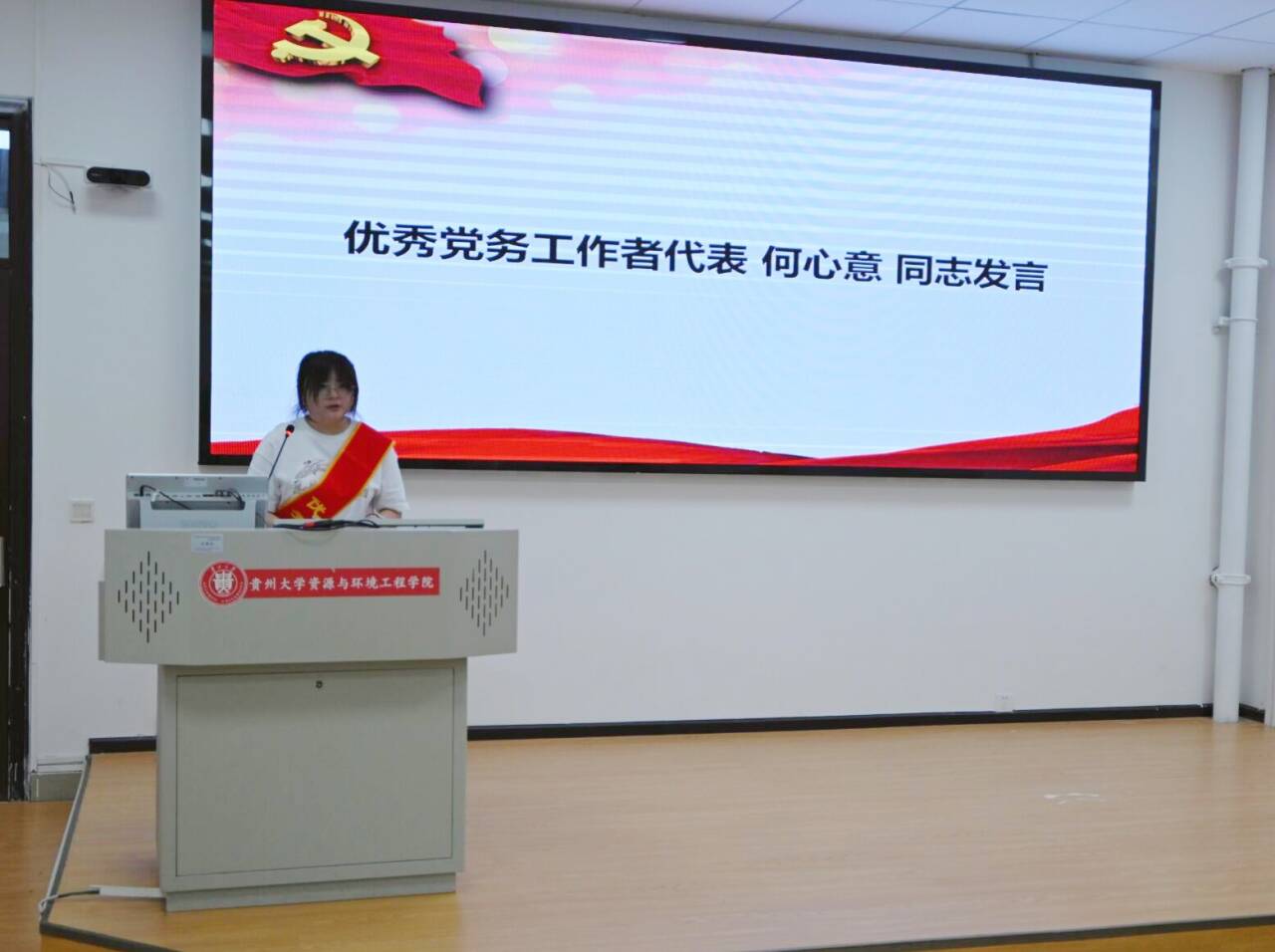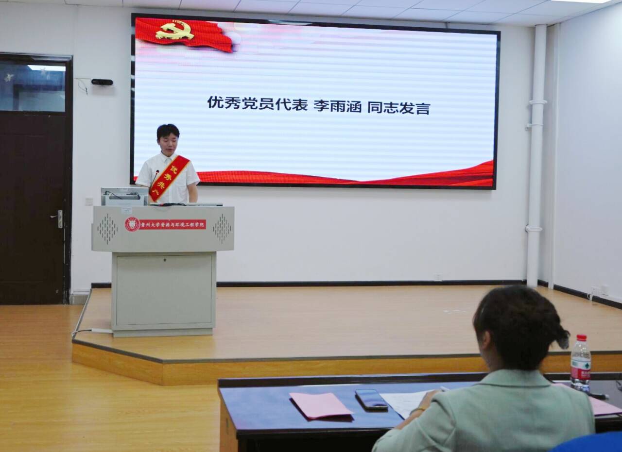 随后大会进行第二阶段——“两优一先”树标杆,榜样力量促前行主题党日活动。优秀党员代表李雨涵结合自身支教经历,分享了“把论文写在祖国大地上”的实践感悟;优秀党务工作者何心意以“打造有温度的党建”为主题,介绍了创新组织生活的经验;先进基层党组织代表刘埔则从党建引领科研攻关的角度,展示了党支部在生态文明建设中的战斗堡垒作用。