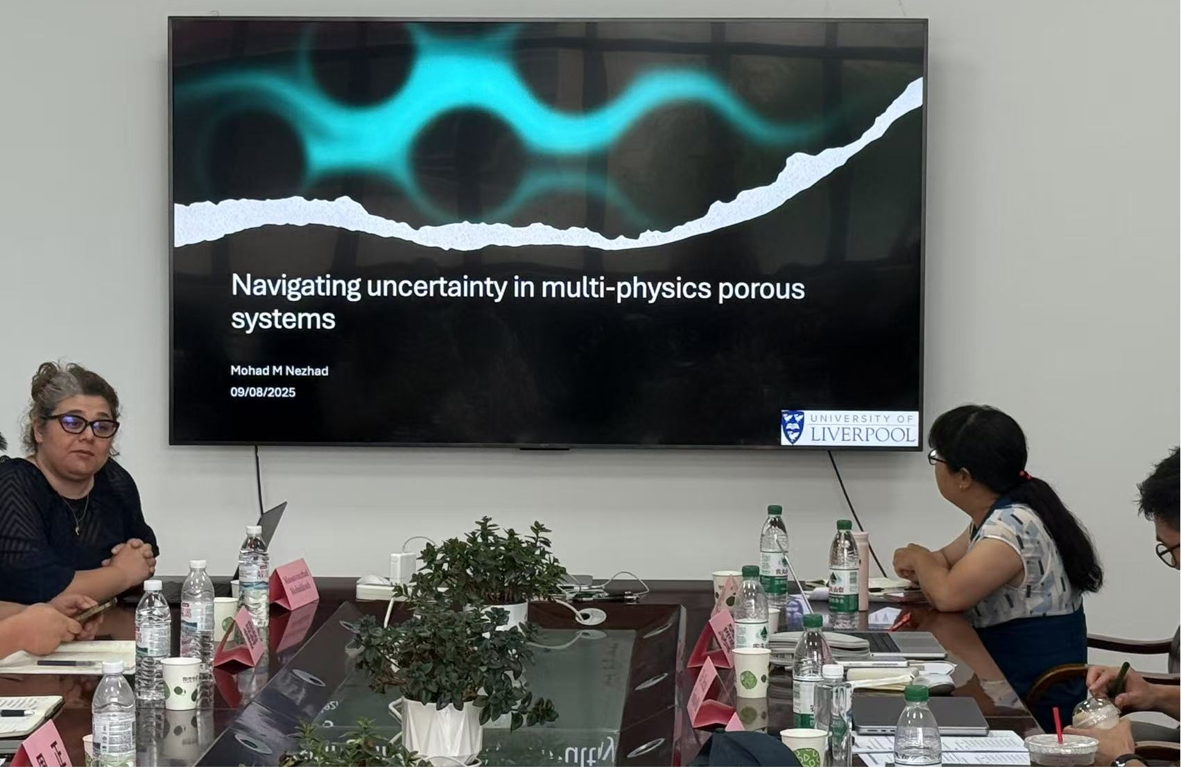 利物浦大学MOUSAVINEZHAD MOHADDESEH 教授以“Complex Currents: Exploring Non-Linear Flow Dynamics in Heterogeneous Deformable Porous Rocks”为题目做了报告,她聚焦非均质可变形多孔岩石的水流运动规律,深入剖析了非线性流动动力学的关键影响因素,分享了团队在多物理场耦合模拟、实验装置研发等方面的突破。