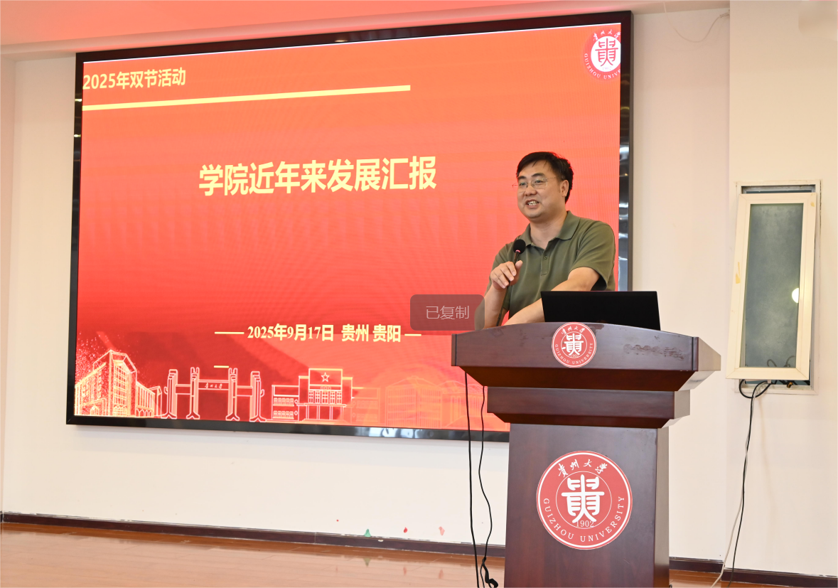 随后,我院院长付勇向与会人员详细介绍了近年来学院在学科建设、师资队伍、科研成果、人才培养及国际交流等方面取得的发展成就。付勇院长提到,学院近年来在喀斯特环境治理、资源循环利用等研究方向取得了显著进展,多项科研成果获国家级和省部级奖励,这些成绩的取得离不开退休教师们昔日的辛勤耕耘和持续关怀。